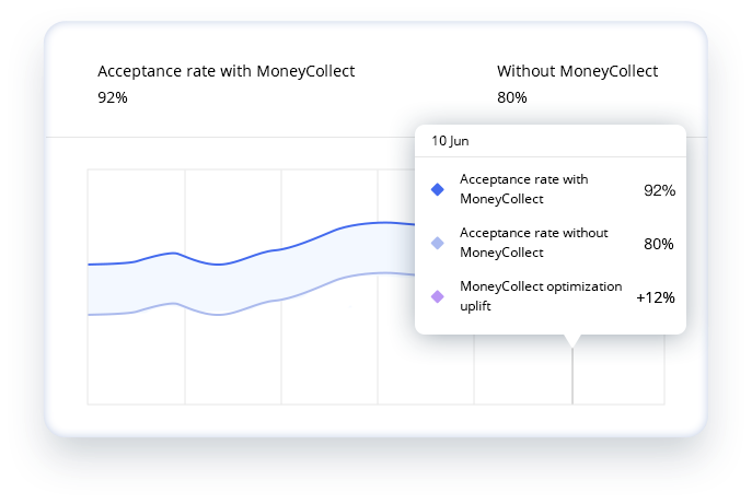 3D Secure 認證和卓越的結帳流程為您提高轉化率並接受更多交易。